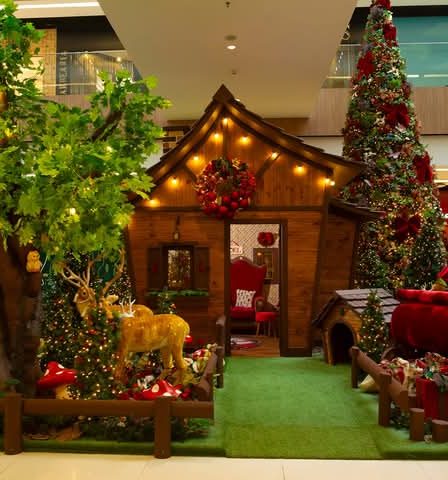 Decoração natalina promove a conscientização ambiental; casa do Papai Noel conta com 90% de madeiras reaproveitadas e certificadas Arborização natural do Shopping Parque da …