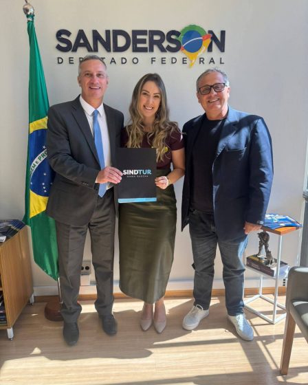 Os dirigentes do Sindtur Serra Gaúcha, presidente Cláudio Souza e a Executiva Lisa Gottschalk, estiveram em Brasília onde conversaram com os deputados Federais, Ubiratan Sanderson …