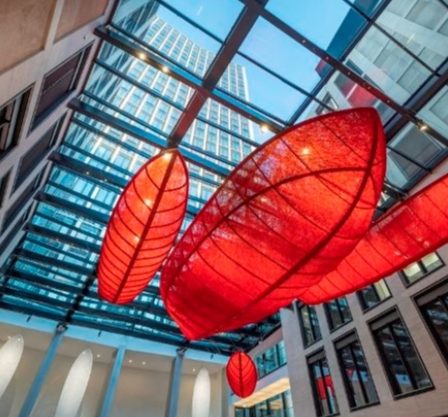 A canoa de bambu com seis metros suspensa do teto do Salão dos Espelhos no Asiana dá aquela sensação de um mergulho no mar quando …