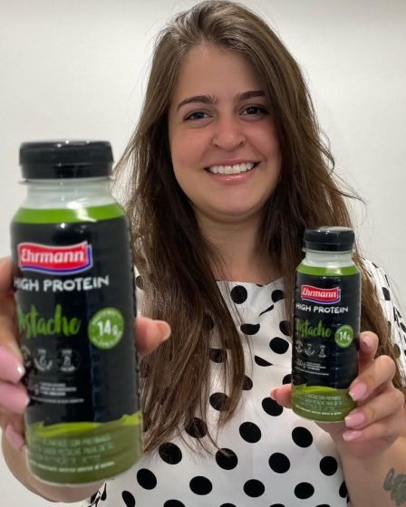 Linha Ehrmann High Protein agora ganha o sabor pistache nas versões garrafa de 250g com 14g de proteína e embalagem pouch de 160g com 17g …