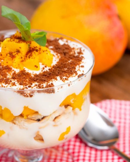 OS DIAS QUENTES VOLTARAM E MERECEM UM DOCE REFRESCANTE: PAVÊ DE MANGA COM CACHAÇA