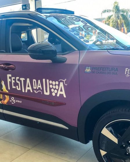 Veículo envelopado com a arte oficial também divulga a Festa pelas ruas de Caxias Muito antes de cruzarem palcos, desfiles e agendas oficiais, a …