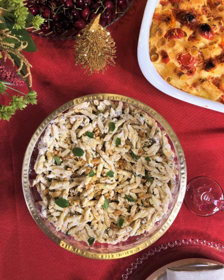 SALADA DE MINI PENNE COM CREAM CHEESE, ERVAS E NOZES: SABOR E PRATICIDADE PARA O NATAL