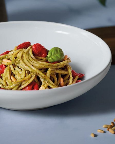 SPAGHETTI AO PESTO GENOVESE COM TOMATES DOURADOS E MANJERICÃO: UMA RECEITA LEVE E SABOROSA PARA OS DIAS DE CARNAVAL