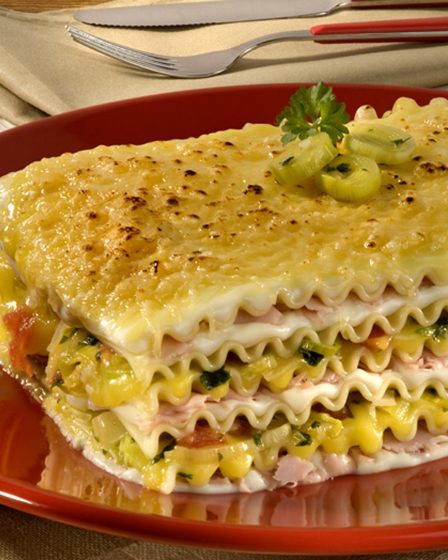 LASANHA AO CREME DE MANDIOQUINHA COM ALHO PORÓ