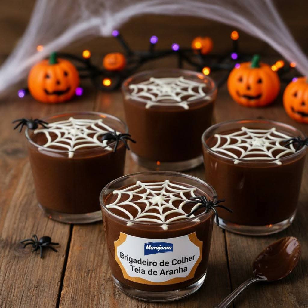 Em uma panela, coloque o leite condensado Marajoara, o chocolate em pó e a manteiga. Depois, cozinhe em fogo baixo, mexendo sempre, até começar a desgrudar do fundo. Assim que isso acontecer, desligue o fogo, adicione o creme de leite Marajoara e misture bem. Distribua em copinhos e deixe esfriar, e, por fim, finalize com cobertura branca, desenhe uma teia de aranha por cima. Solte a imaginação com as crianças!