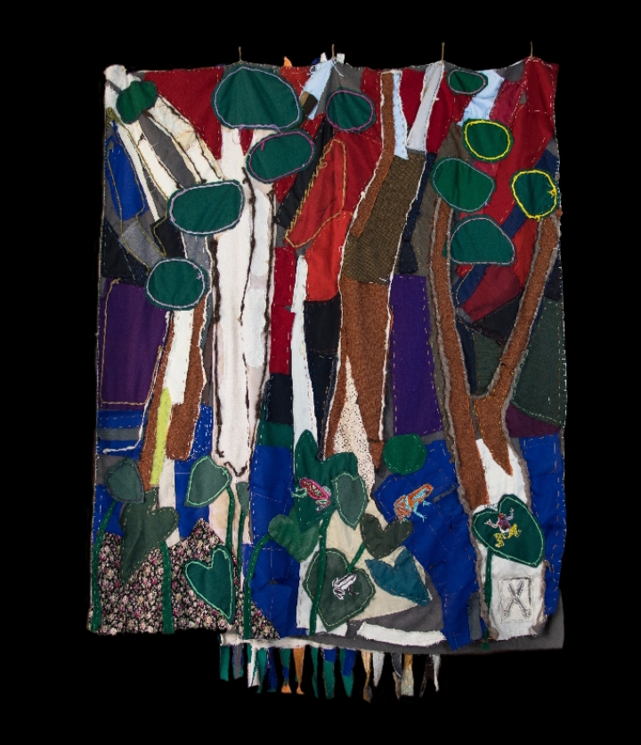 “‘A Pele do Bordado’ apresenta uma produção autobiográfica que evoca lembranças de uma vida, narradas em coloridas, vibrantes e preciosas camadas de tecido”, sintetiza a curadora. “As sobras de tecido e tiras que Fernando costura criam camadas e revelam transparências e texturas, capazes de contar as histórias nelas contidas. Utilizando a costura e os pontos do bordado como uma delicada ferramenta de apresentação de sua sensibilidade e de seu universo simbólico, Fernando nos oferece suas obras como possibilidade de partilha. Aqui, o nosso corpo pode aceitar o convite do artista de vestir os seus panôs como uma segunda pele e se impregnar de calor e proteção”, observa Alexandra.