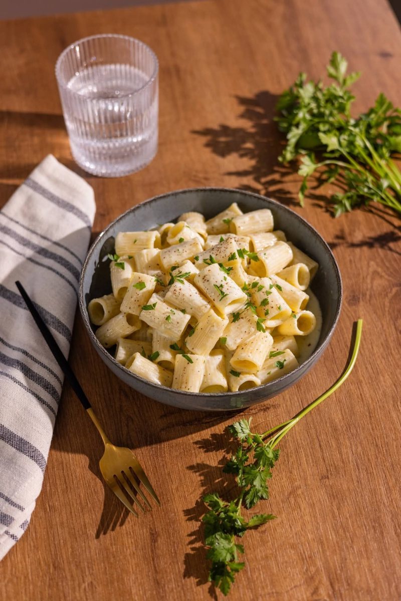 – 1/4 xícara de água quente reservada do cozimento do macarrão
