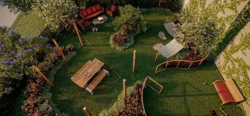 No térreo, os moradores terão acesso à piscina, espaço fitness, brinquedoteca, playground e pet wash. O rooftop, por sua vez, foi idealizado para o convívio e a celebração, com espaço gourmet externo, lareira (fireplace), salão de festas e lounges para relaxar e apreciar a vista. Já o jardim “secreto” se sobressai por ser um espaço de contemplação e bem-estar, onde redário, chimarródromo e área para piquenique ficam entre as árvores nativas. Além de ser uma área onde pisar na grama e colher temperos na horta conferem a sensação de estar no quintal de casa.