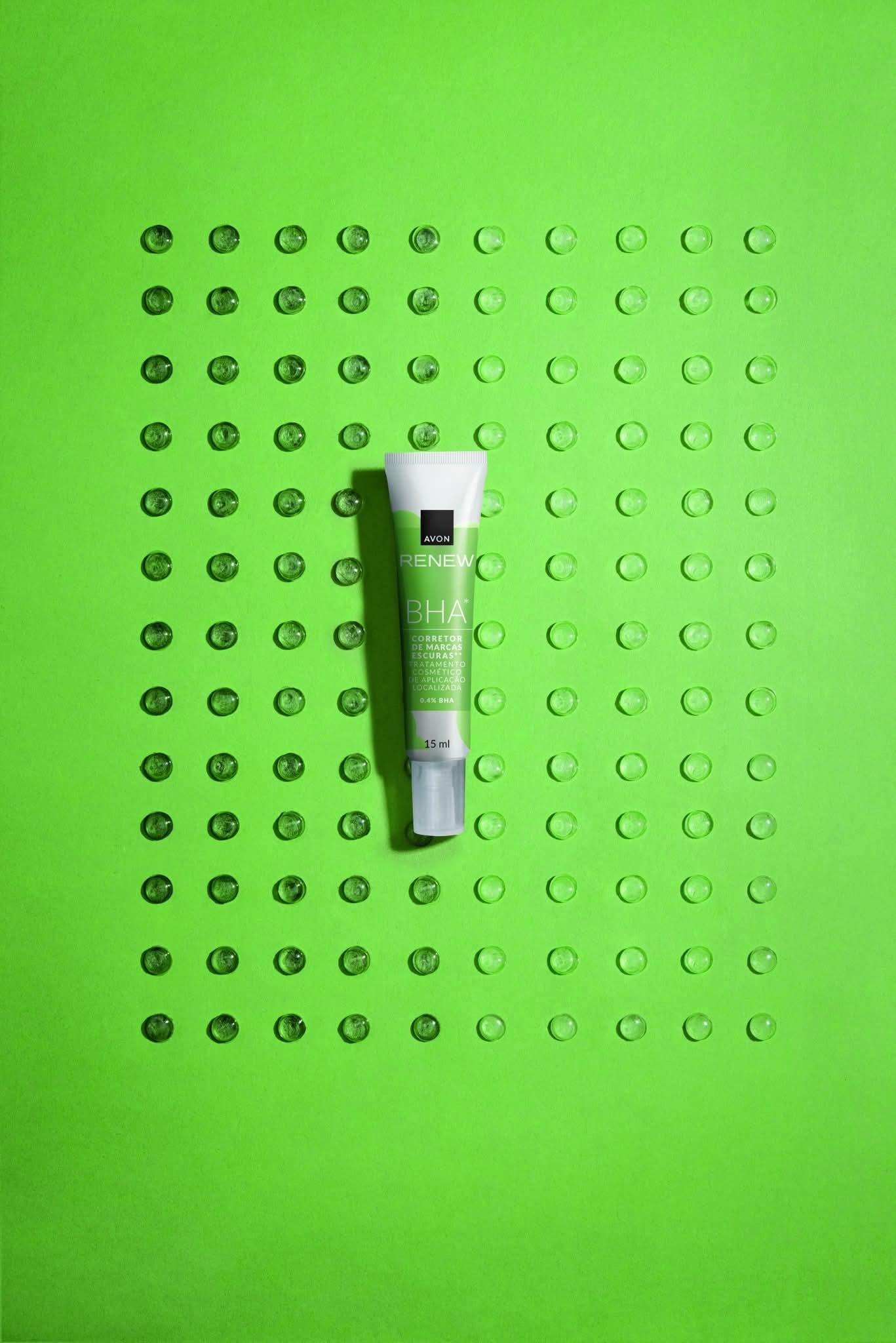 Desenvolvida para agir diretamente nas áreas escurecidas da pele, o Avon Renew Corretor de Precisão AntiManchas, conta com ativos chaves na redução e prevenção de manchas: o AHA (alfa-hidroxiácido) que renova a pele e remove células morta e o BHA (e o beta-hidroxiácido) que trata mais fundo, limpando os poros e suavizando as manchas. Em 3 dias deixa o tom da pele mais uniforme e transforma a textura da pele e em 2 semanas 9 em cada 10 pessoas concordam que o tom da pele parece mais uniforme*. Seu uso é recomendado a noite