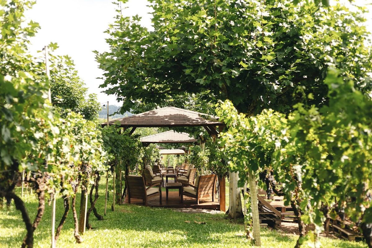 A novidade se integra ao Larentis Lounge, espaço criado para aproximar o visitante do vinho, da natureza e do cotidiano da vinícola. Localizado atrás do prédio principal, o vinhedo desce suavemente acompanhando a geografia do lugar e revela, ao fundo, a silhueta urbana de Bento Gonçalves. É uma paisagem singular, que combina o acolhimento rural com a vista para a cidade, oferecendo ao visitante a sensação de estar em um refúgio — e agora, com uma infraestrutura projetada para ampliar essa conexão.