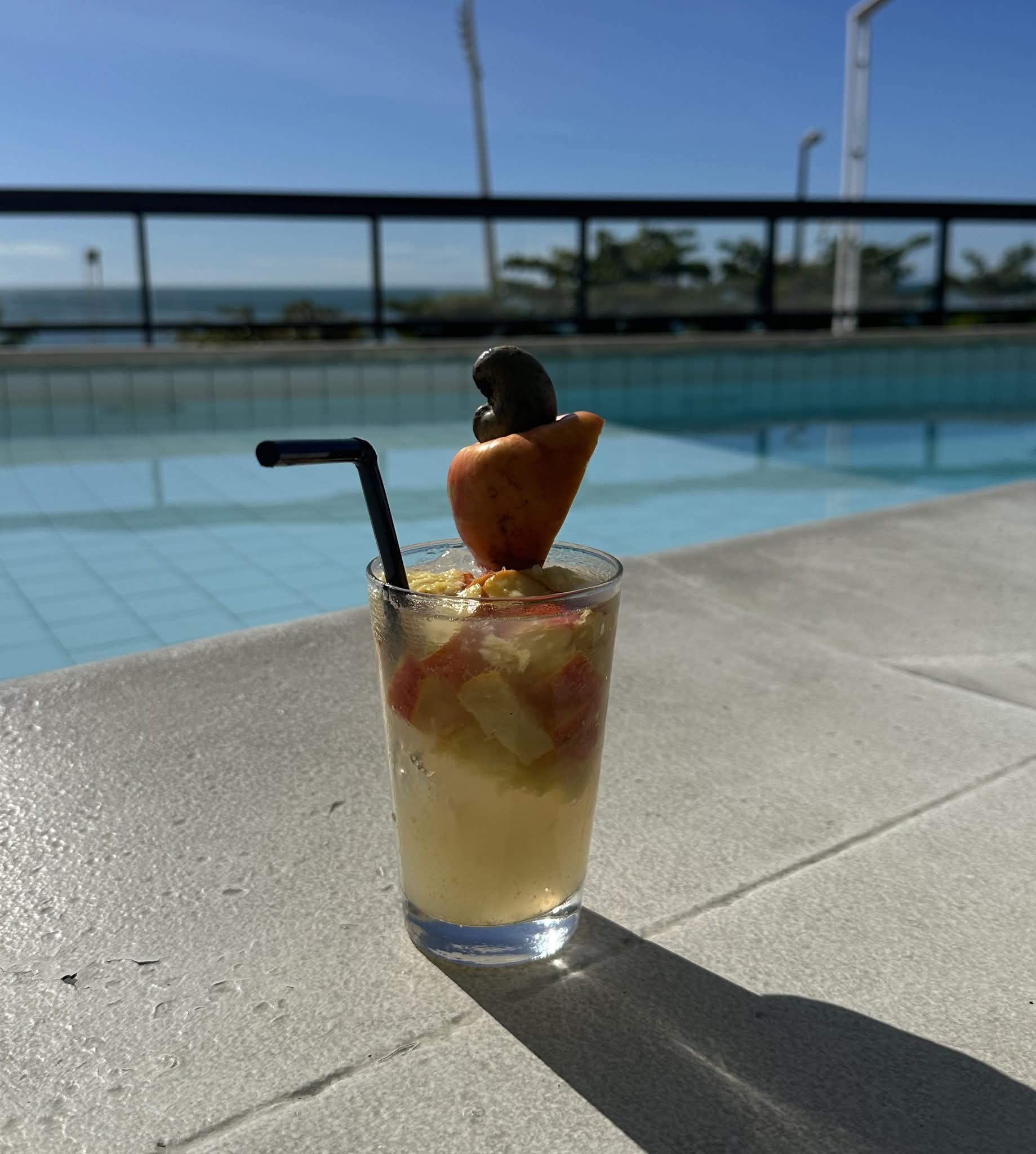 As opções podem ser apreciadas ao redor da piscina e nas áreas de lazer do hotel, que oferecem uma vista privilegiada para o mar de Fortaleza. O cenário é ideal para relaxar sob o sol ou aproveitar o fim de tarde com um pôr do sol inesquecível, espetáculo diário que pinta o céu em tons vibrantes e torna a experiência ainda mais especial.