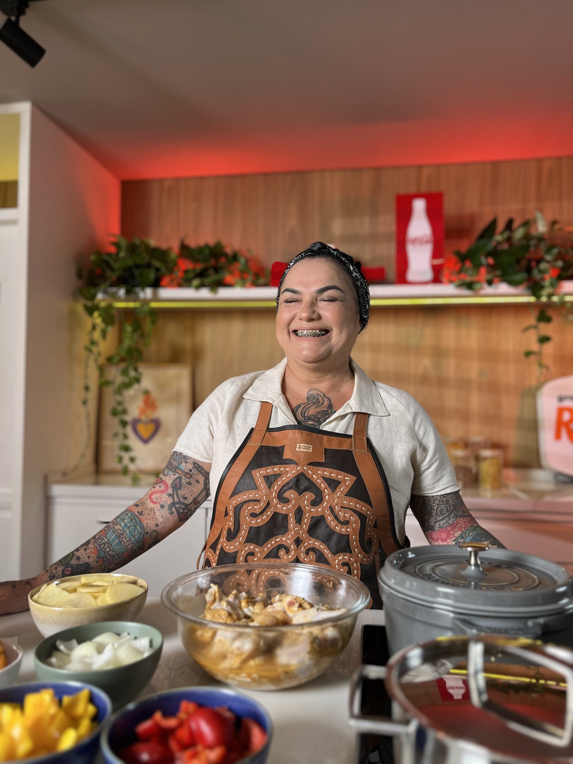 “Para o preparo da receita, misturei todos os ingredientes muito bem em uma bacia e, com a ajuda de uma concha, despeje a mistura nas quengas (as bandas do coco). Em seguida, levei ao forno em assadeiras forradas com papel alumínio, por cerca de duas horas, em temperatura de 160 graus. Para finalizar, sirvo cada quenga com um picolé Cocada Moreninha sobre a cocada ainda quente”, detalha Van Régia.