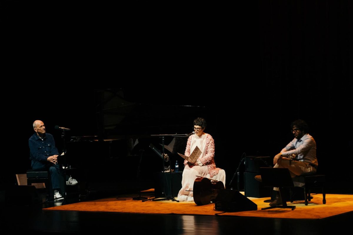 Complexo Brasil, no mês de novembro do ano passado, na Fundação Calouste Gulbenkian, em Lisboa, Portugal. Unindo a cantora e compositora Adriana Calcanhotto, o compositor, pianista, cantor e ensaísta José Miguel Wisnik e o violonista João Camarero, o espetáculo propõe uma conversa expandida, na qual se desdobram sonoridades e elementos da poesia e da cultura brasileira e da cultura lusitana nas suas redes de subtilezas e complexidades.