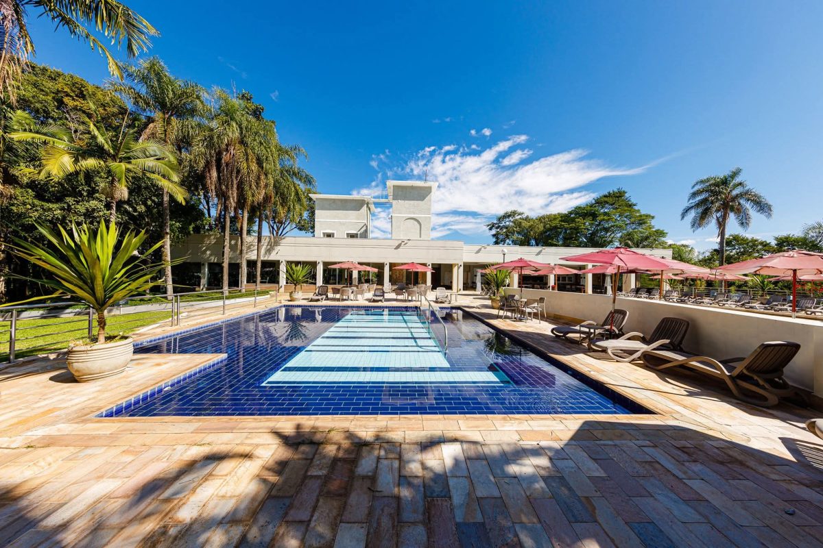Durante toda a estadia, os hóspedes podem aproveitar o amplo complexo de lazer do resort, que inclui piscina externa climatizada, quadras de tênis, quadra poliesportiva, quadra de areia e campo de grama natural, além de espaços voltados ao descanso, como redário e piscina aquecida.