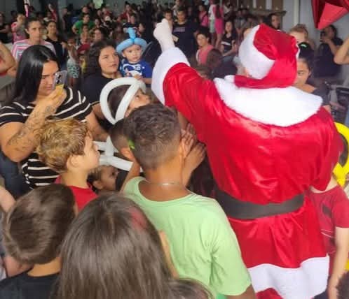 A programação da tarde inclui pintura de rosto e cabelo, piscina de bolinhas, tobogã inflável, brincadeiras diversas, apresentação de mágica e músicas natalinas, além de lanche à vontade com pastel, cachorro-quente, enroladinhos e bolo.