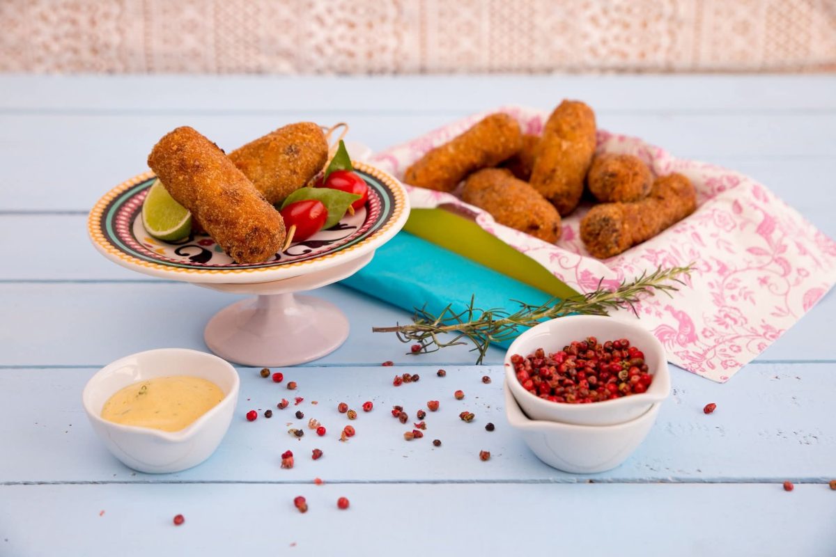 Os Palitos de Queijo Empanados garantem crocância por fora e recheio cremoso, ideais para compartilhar. O Croquete de Carne é uma opção clássica, com textura macia e sabor marcante, perfeita para servir em porções.