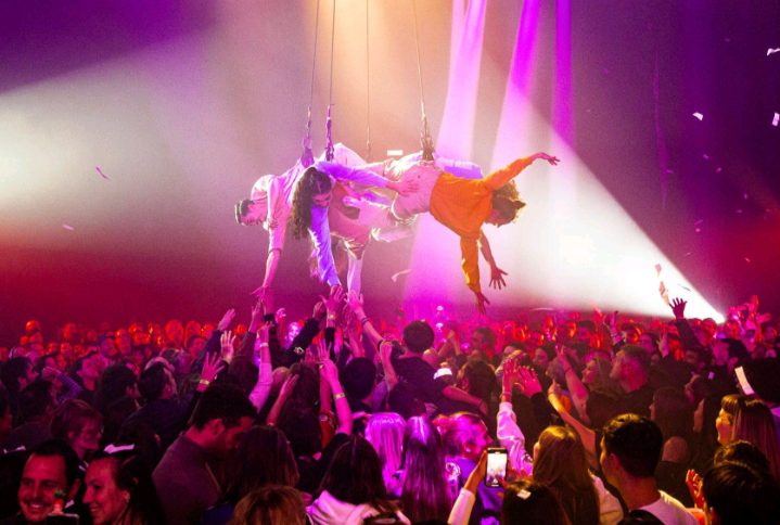 Com uma linguagem única, o show combina música, movimento, performance aérea e interação direta com o público.
