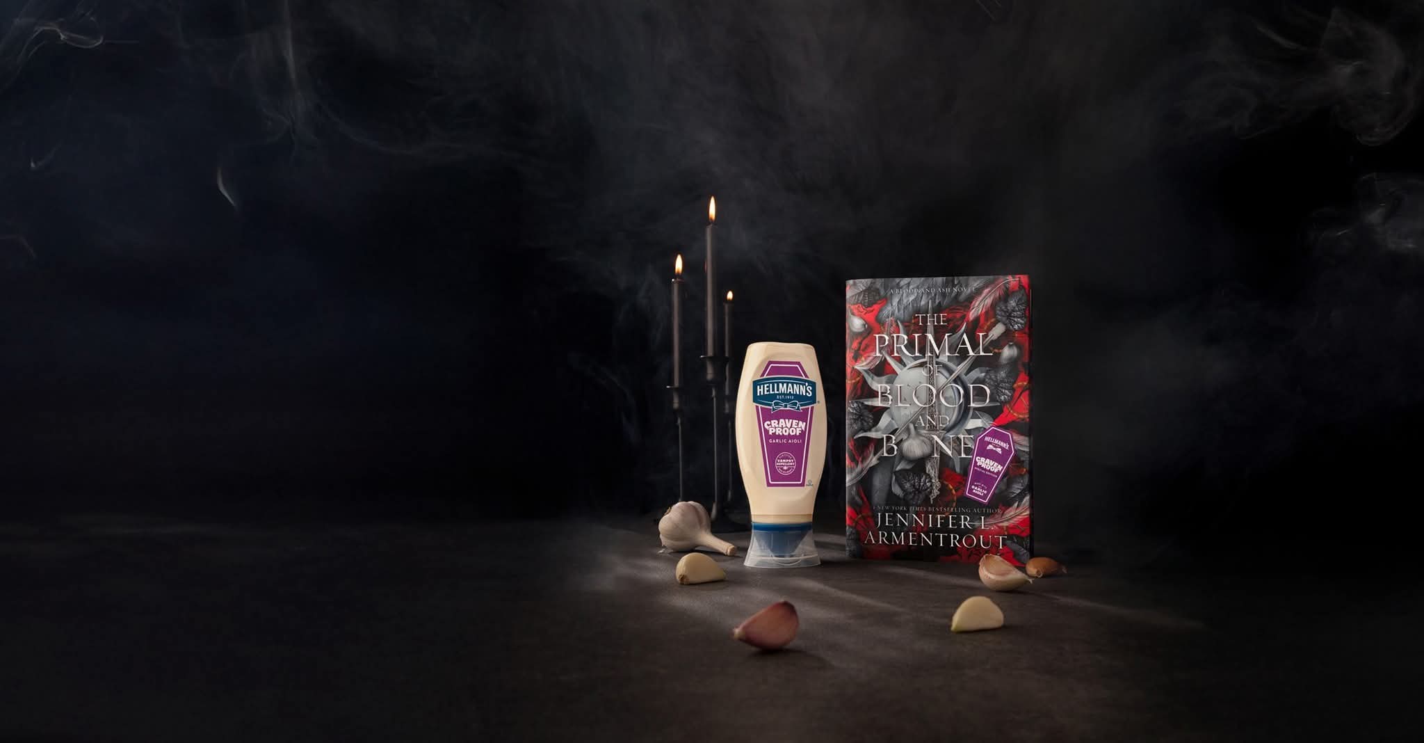 Às vésperas do Halloween, na temporada de sustos e assombrações – ou “Spooky Season”, em inglês –, leitores do BookTok, fãs de romantasia (ou fantasia romântica) e amantes de alho têm um motivo em comum para comemorar. Nos Estados Unidos, Hellmann’s se uniu à autora best-seller nº 1 do New York Times, Jennifer L. Armentrout, para lançar a edição especial “À Prova de Cravens” de seu novo livro “The Primal of Blood and Bone” (ainda sem título em português), o último volume da série de sucesso “Sangue e Cinzas”, lançado no final de setembro desse ano.