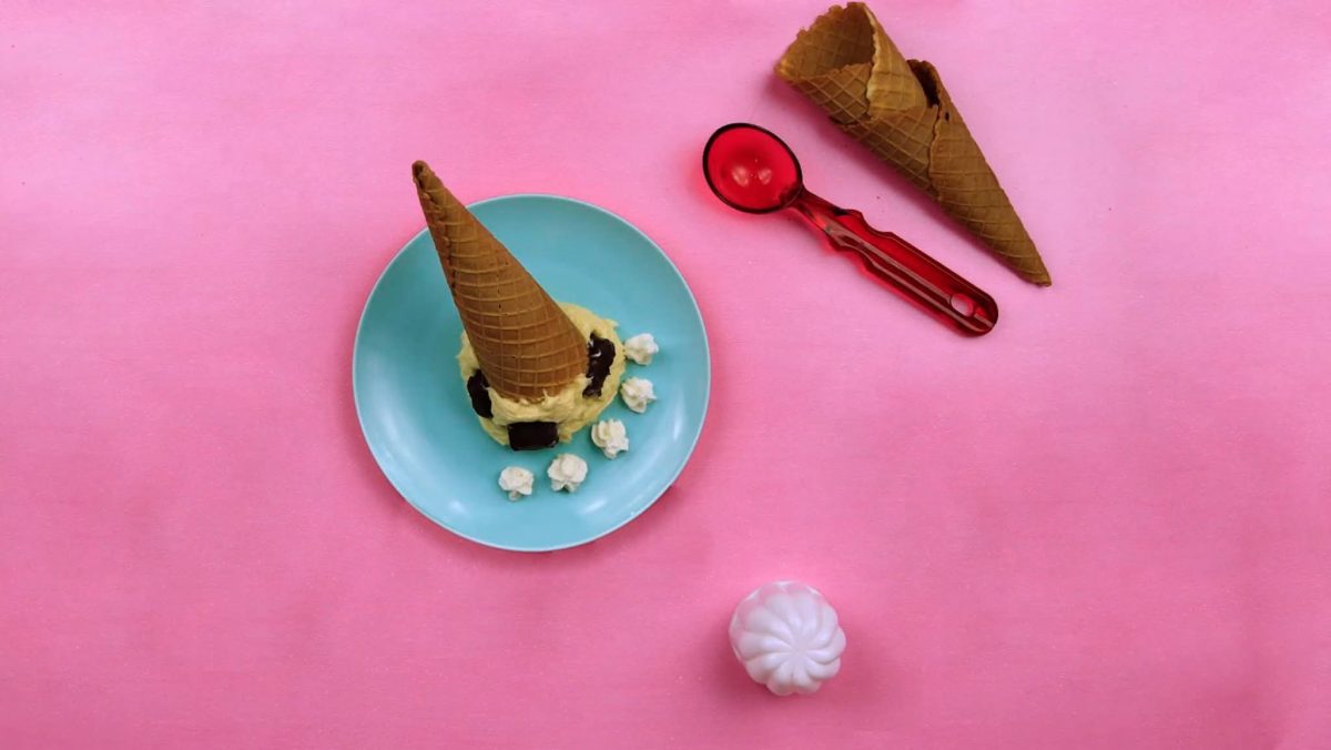 – Pegue esses cubinhos e misture no pote de sorvete e leve ao freezer. Só servir e caprichar na apresentação.
