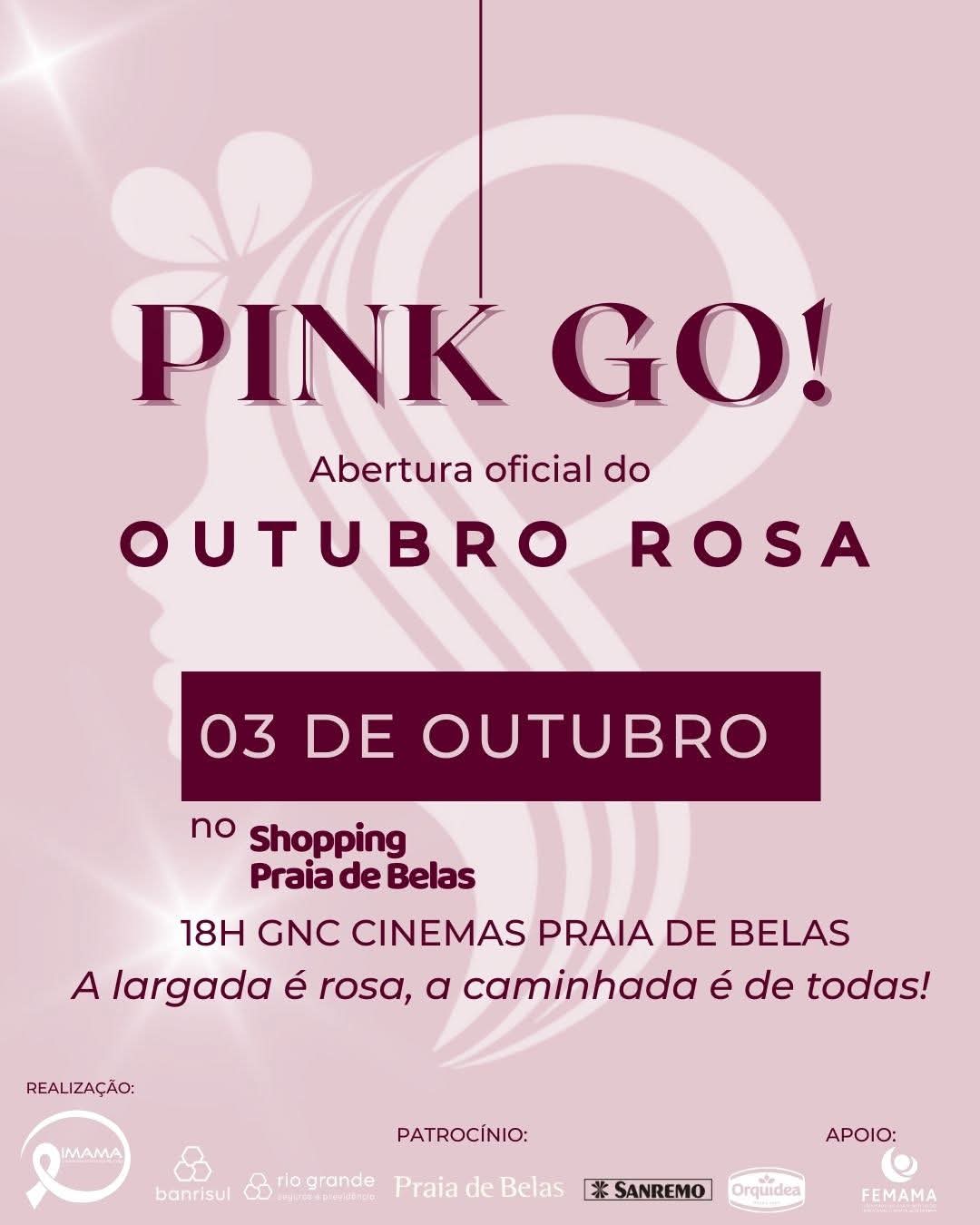 O mês mais rosa do ano está chegando e, com ele, uma mobilização coletiva pela saúde da mulher. Em uma iniciativa de conscientização, o IMAMA (Instituto da Mama do RS) realiza no dia 3 de outubro, às 18h, a abertura oficial da campanha Outubro Rosa 2025 com o evento “Pink Go!”, no GNC Cinemas do Shopping Praia de Belas, em Porto Alegre.