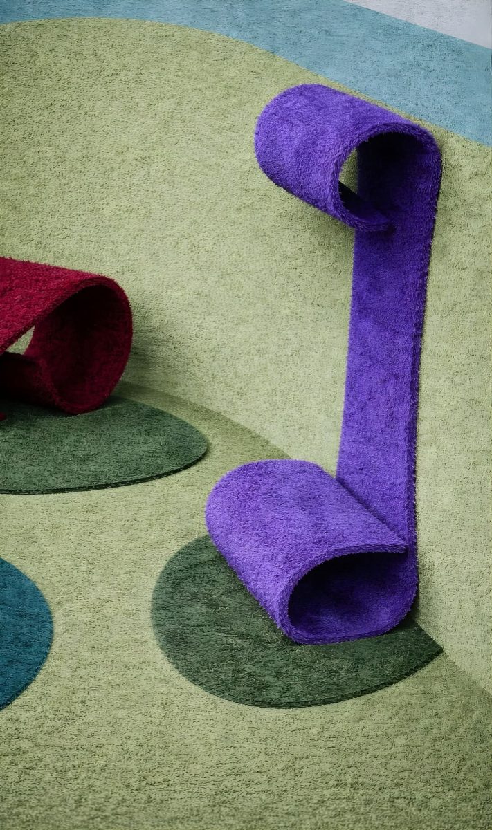 Diferentemente da reciclagem tradicional, o material passa por um processo de regeneração química que devolve o polímero ao seu estado molecular original, permitindo que a fibra retorne à condição de matéria‑prima virgem. O processo reduz em até 50% as emissões de CO₂ em comparação aos métodos convencionais e evita o envio de resíduos para aterros. O resultado é um espaço imersivo em que design, paisagem e pesquisa têxtil se articulam para construir uma experiência sensorial na qual técnica, imaginação e natureza se encontram.