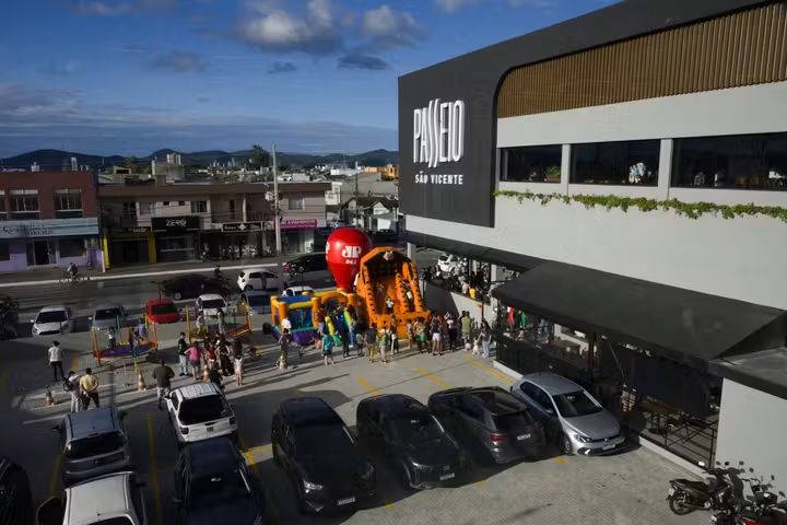 Com 5,5 mil m² de área construída, o Passeio São Vicente marca uma nova fase para um dos bairros mais tradicionais de Itajaí. Instalado na Rua Arquiteto Nilson Edson dos Santos, o centro comercial conta com lotérica, serviços da Caixa Econômica Federal, restaurante Naruto Sushi, academia Selfit, espaço infantil Brava Park e diversas marcas voltadas ao dia a dia dos moradores. A inauguração foi marcada por um evento gratuito para a comunidade, que reuniu famílias em uma tarde de lazer e celebração.