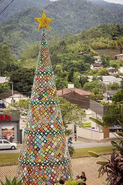 Rodeio, no Vale do Itajaí, já vive o clima natalino com a instalação da maior árvore de Natal em crochê do Brasil. A estrutura, com 12 metros de altura e quatro de diâmetro, foi instalada em frente à Igreja Matriz São Francisco de Assis, no Centro da cidade, e promete ser uma das principais atrações natalinas da região. Para isso, foram confeccionados 4 mil quadradinhos de crochê, iniciativa que conta com o apoio da Círculo, maior fabricante de fios para trabalhos manuais da América Latina.
