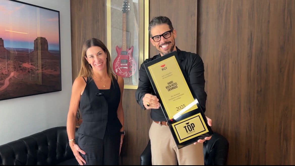 A premiação foi entregue em Gramado pela diretora executiva da RCI, Fabiana Leite, e pelo gerente executivo da companhia, Marcos Ravagnani, em reconhecimento aos resultados expressivos da operação do Residence Club Hard Rock Hotel Gramado. O empreendimento já ultrapassou a marca histórica de R$ 1 bilhão em Volume Geral de Vendas (VGV), consolidando-se como um dos projetos mais relevantes e bem-sucedidos do setor imobiliário turístico no Brasil.