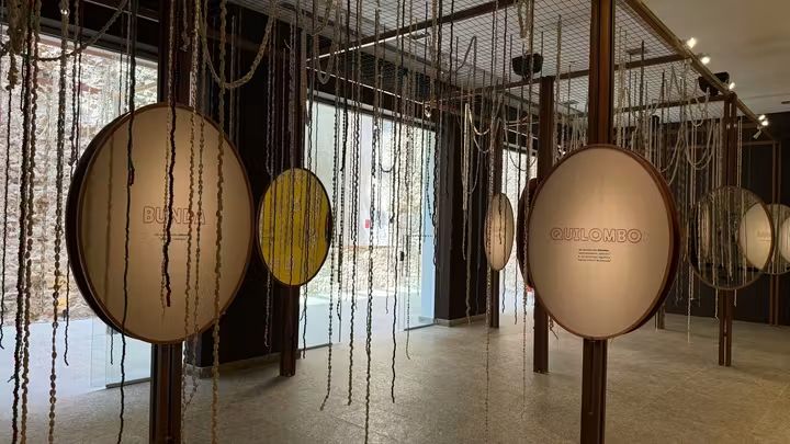 Além da língua, essas presenças ecoam em manifestações culturais diversas, como na música, na arquitetura, nas festas populares e nos rituais religiosos. Na mostra, instalações sonoras, produções audiovisuais, símbolos Adinkra (sistema de escrita do povo Ashanti) e materiais como búzios compõem um espaço de memória e celebração que conecta passado e presente, oralidade e escrita. O resultado é uma experiência imersiva que reconhece e valoriza as heranças afrodiaspóricas em constante transformação.