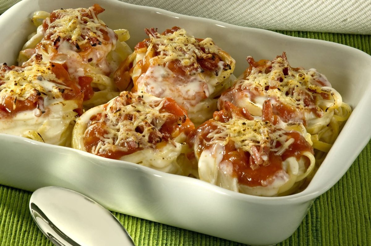 A carne seca é dessalgada, cozida e refogada com temperos, enquanto o molho branco ganha cremosidade com vinho. Os ninhos de massa Vitarella são recheados com a carne, cobertos pelo molho e gratinados com parmesão, resultando em um prato dourado e cheio de sabor pernambucano.