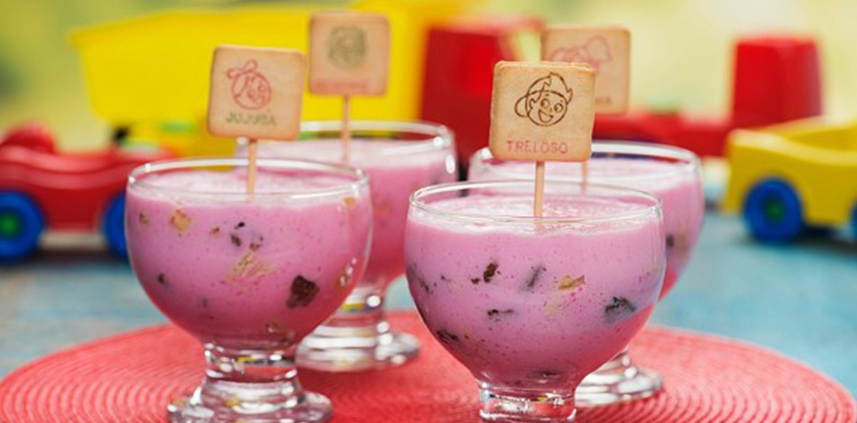 A Taça de Morango com Clubinho Treloso e Chocolate une creme de iogurte de morango com gelatina, leite condensado e creme de leite. Intercalada com pedaços de biscoito Clubinho Treloso e chocolate ao leite picado, resulta em uma sobremesa colorida e irresistível. Montada em taças, pode ser finalizada com um biscoito decorativo, tornando-se um destaque especial na Páscoa.
