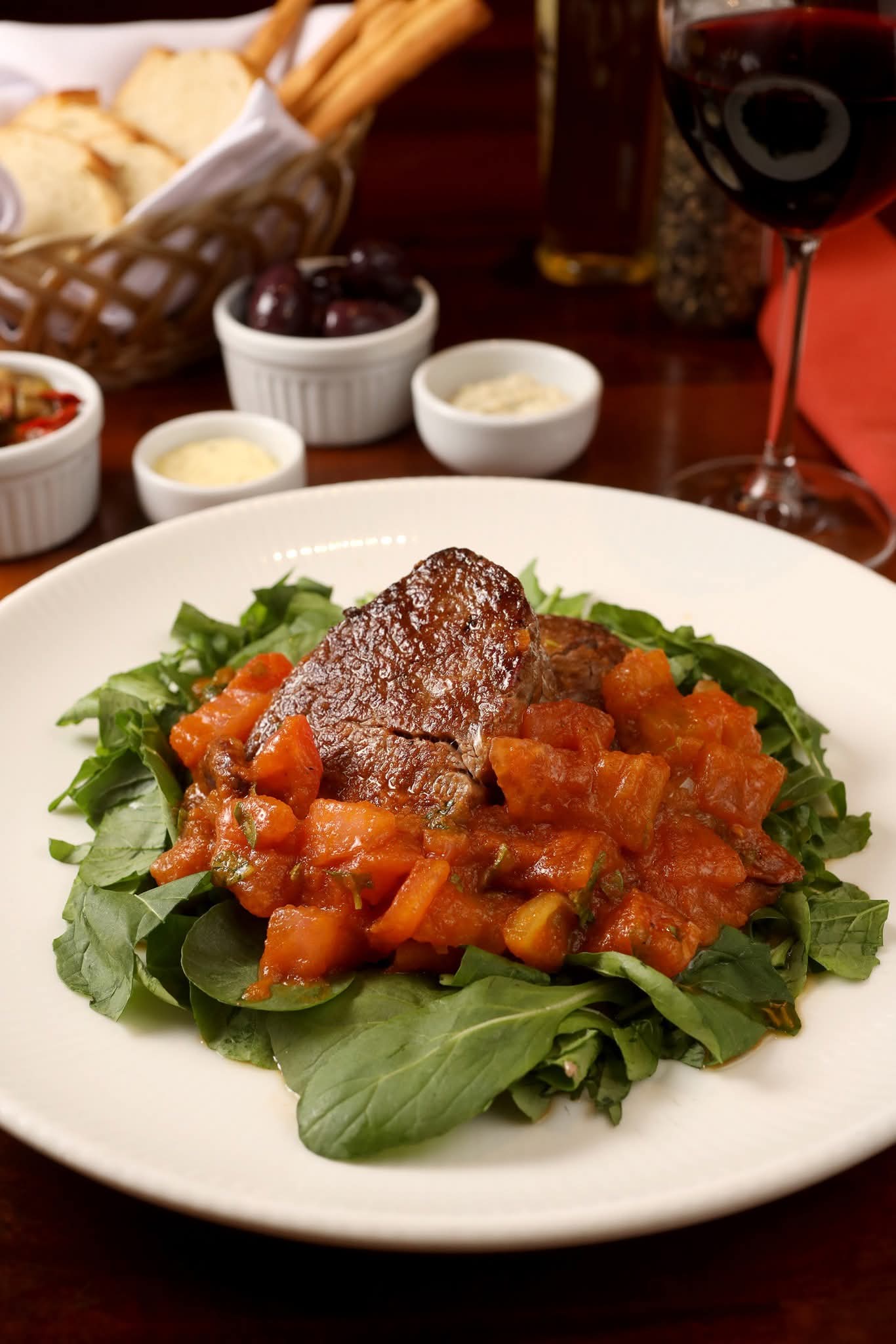 Dentre os pratos principais, estão o Anolini di Agnelo, massa artesanal recheada de cordeiro, um toque de molho branco, aspargos verdes, tomate cereja e manjericão (R$ 90,00); e o Medalhão de filé grelhado com molho de tomate sem pele, manjericão e azeitonas pretas. Acompanha rúcula triturada (R$ 110,00).