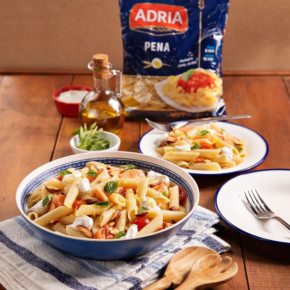Se você procura uma receita prática, nutritiva e ao mesmo tempo elegante, essa salada é a escolha certa. A massa al dente se une às lascas de salmão assado, criando uma base deliciosa. O vinagrete de limão siciliano traz um toque cítrico, enquanto os tomates cereja adicionam cor e frescor. Para completar, a crocância das amêndoas torradas e a cremosidade da coalhada seca transformam o prato em uma verdadeira experiência gastronômica.