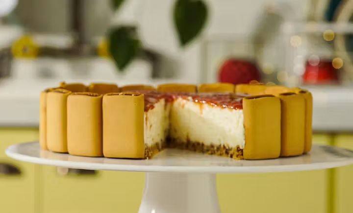 Prepare-se para se apaixonar por essa releitura irresistível da clássica torta holandesa. A base crocante feita com goiabinhas envolve um cremoso recheio de queijo, finalizado com uma generosa cobertura de goiabada derretida.
