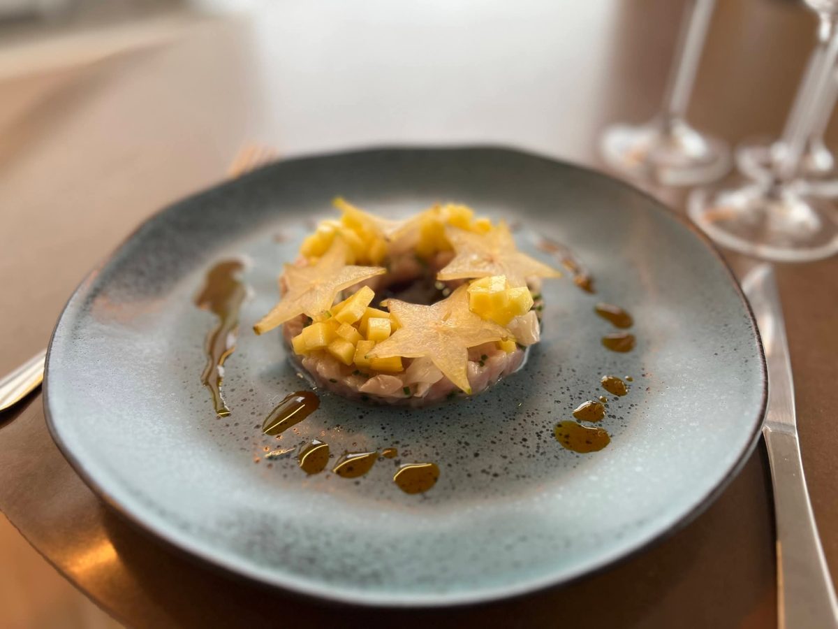 O menu é assinado pelo chef Mateus Monteiro, responsável também pela gastronomia do Café da Catedral. A entrada, “Rio”, apresenta pirarucu delicadamente curado em ceviche, acompanhado de manga verde, carambola e lichia, com azeite de urucum e crocante de tapioca com aroeira, em harmonização com o Trebbiano da Vinícola Cão Perdigueiro, elaborado com uvas de Farroupilha. No prato principal, “Terra”, o ancho defumado surge envolto em molho de missô gaúcho, servido com risoni de cogumelos frescos e espinafre, acompanhado de um Tannat safra 2023, produzido com uvas colhidas em Viamão. A experiência se encerra com a sobremesa “Verão”, que combina pão de ló de limão siciliano embebido em limoncello, butiá, abacaxi flambado no gin, sorbet de goiaba e crocante de abóbora, harmonizada com o Moscatel da Cão Perdigueiro, elaborado a partir de uvas Moscato Giallo de Farroupilha.