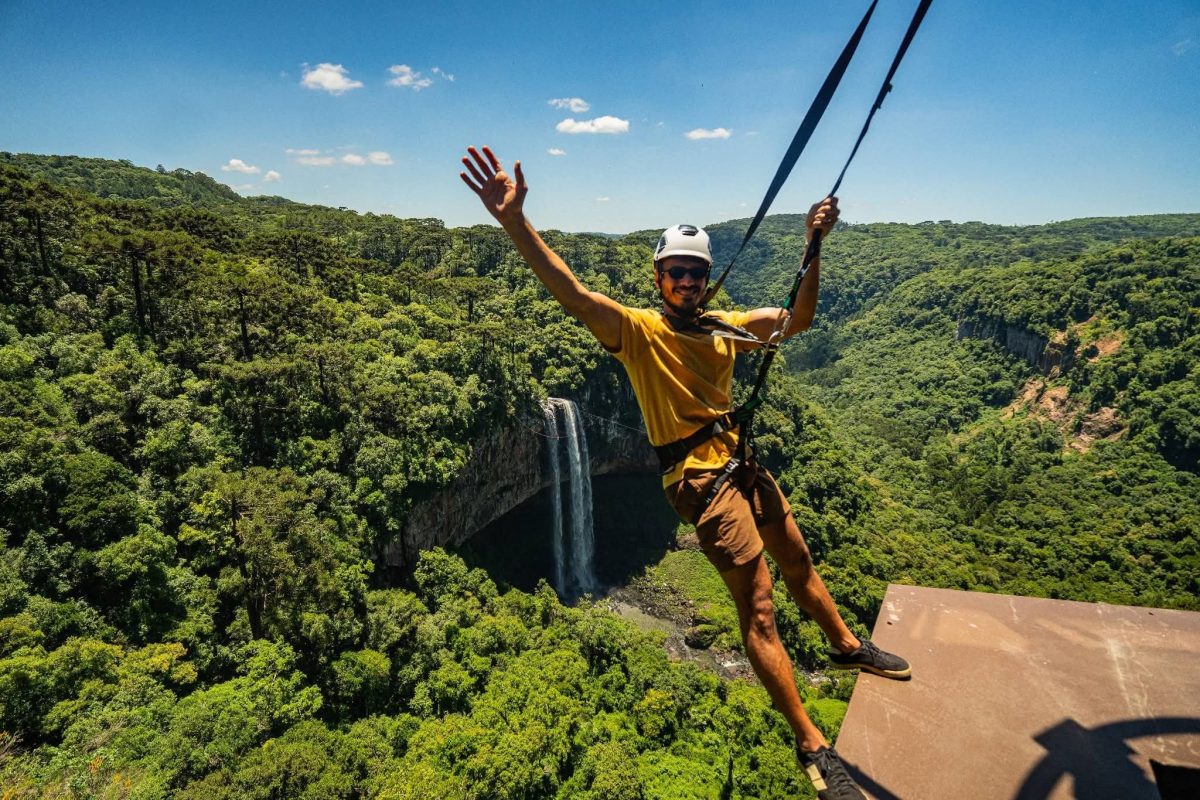 O Parque do Caracol, em Canela (RS), inaugura oficialmente neste sábado, 24 de janeiro, o ‘Corajoso’, sua nova experiência de turismo de aventura contemplativa, e única do tipo no país. O atrativo estava funcionando em formato de soft open desde o dia 18 de dezembro. A atividade explora a liberdade ao permitir que os visitantes contemplem a Cascata do Caracol enquanto caminham por uma viga metálica com menos de 1 metro de largura, presos somente pela estrutura superior, sem apoio nas laterais.