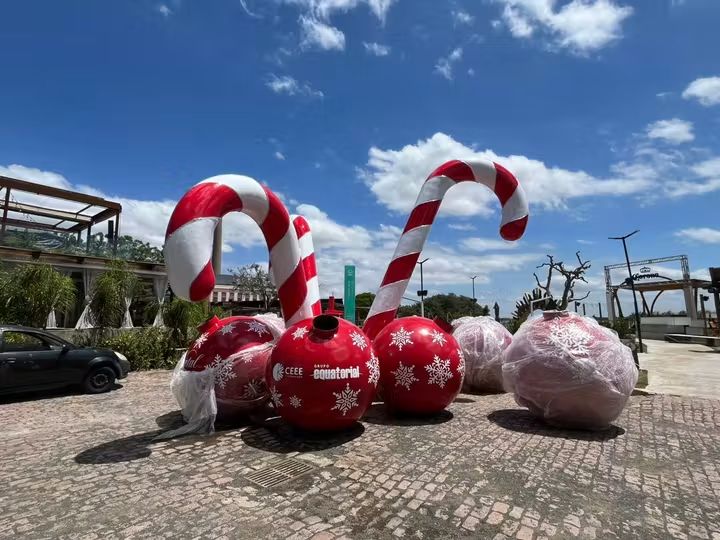 Uma árvore de 10 metros está sendo montada no Gramado Central do Cais Embarcadero, que, nessa época, vira a Vila de Natal: a decoração é também composta por objetos que são iluminados durante a noite, mas que durante o dia chamam atenção pelas proporções – trenó e renas de 2,5m de altura e guirlandas de 3m são exemplos do que o Embarcadero preparou para receber todos em um Natal único.